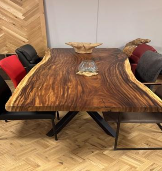 Suar is perfect voor wie een statement wil maken. De natuurlijke kleurverlopen en robuuste uitstraling maken deze houtsoort bijzonder populair voor grote, karaktervolle eettafels.
